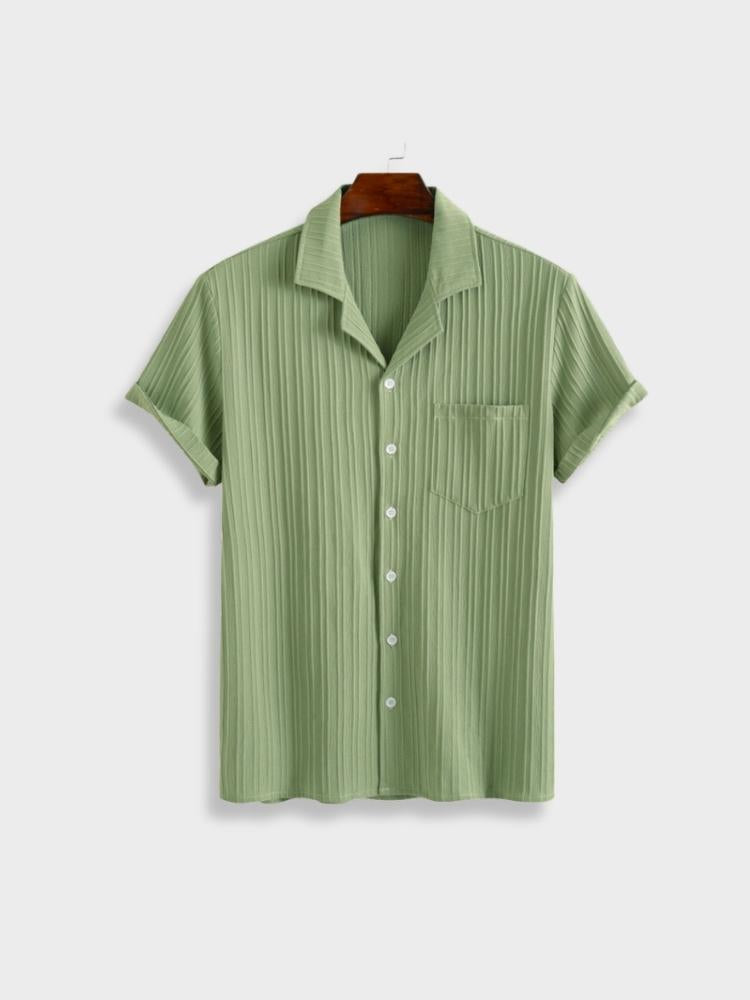 Alberto - Mannen Geripptes Knopfleisten-Hemd
