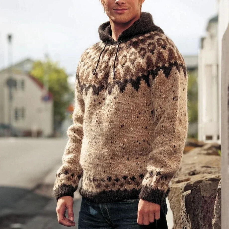 Corbin - Geometrischer Strickpullover mit Kapuze