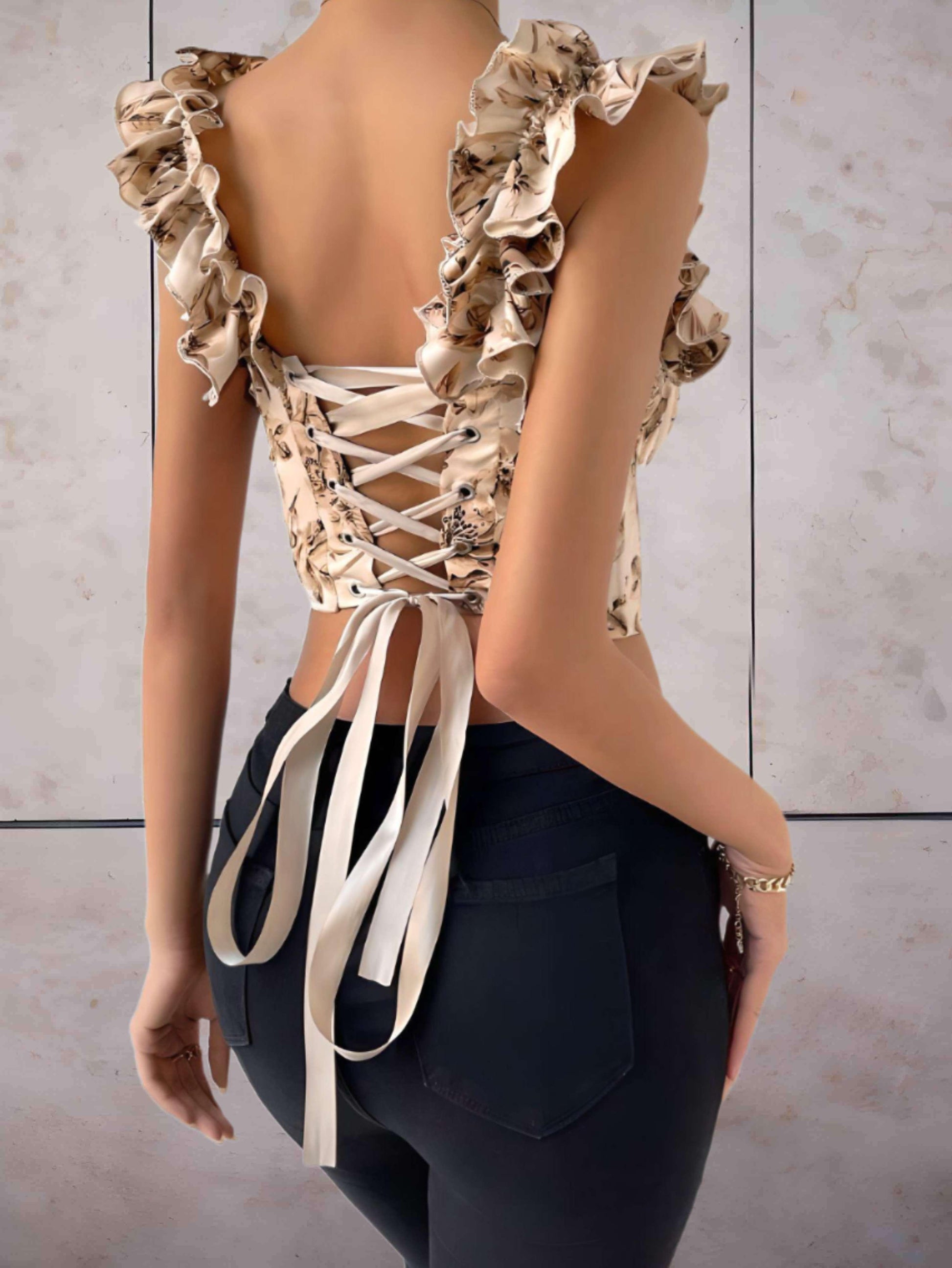 Elena - Beiges Top mit Rüschen