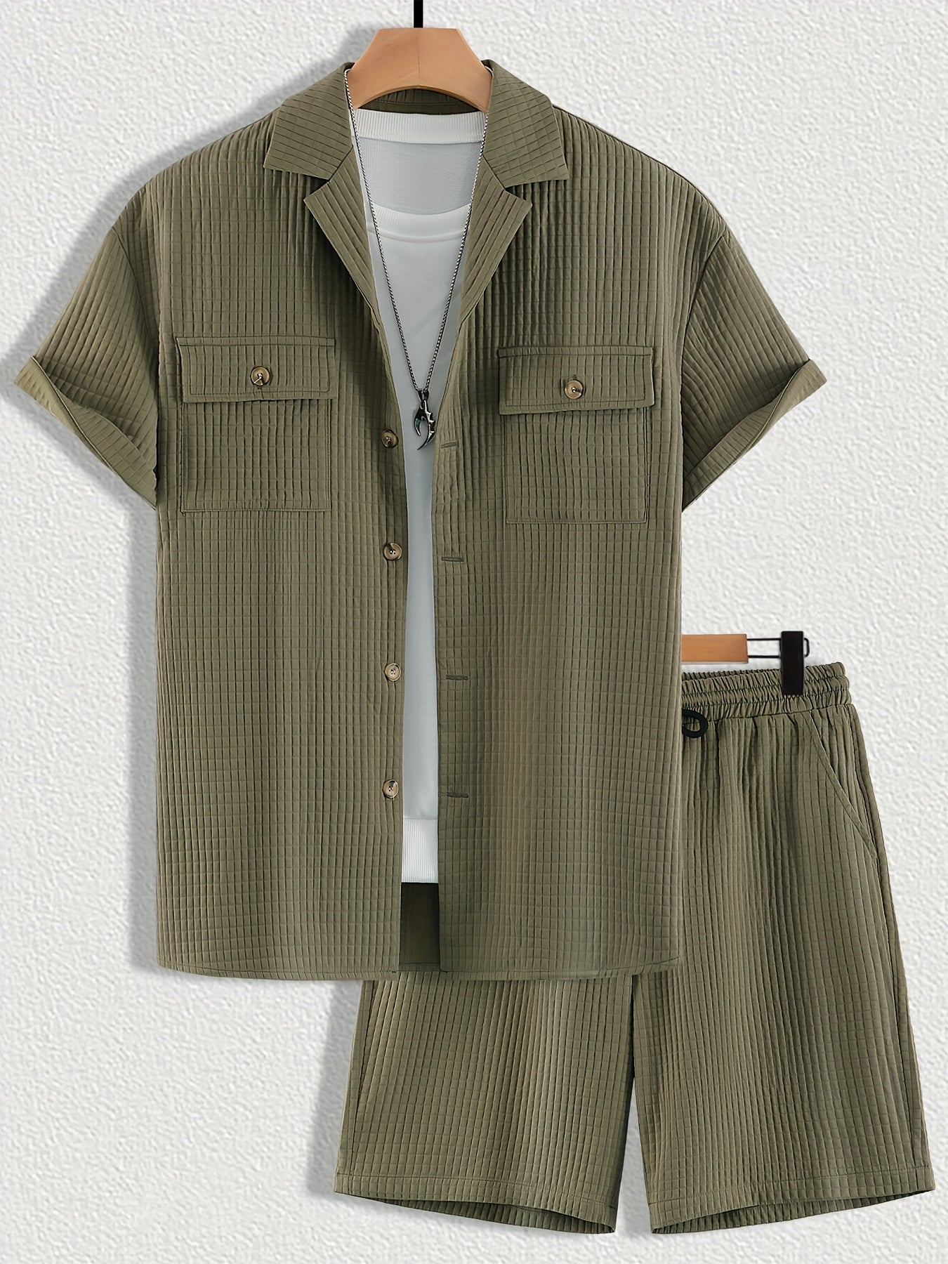 Das Yannick Sommer-Set für Männer vereint praktische Funktionalität mit lässigem Sommerstil. Mit seinen Brusttaschen und dem luftigen Design ist dieses Set ideal für warme Tage und entspannte Gelegenheiten geeignet. Tragen Sie es mit Leichtigkeit und genießen Sie den Komfort sowie die Vielseitigkeit dieses praktischen Ensembles. Ergänzen Sie Ihre Sommergarderobe um das Yannick Set für einen lässigen und funktionellen Look.